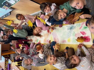 stromů, listů, malovali a tvořili podzimní obrázky. Na závěr se všichni sešli na hřišti, kde z nasbíraného